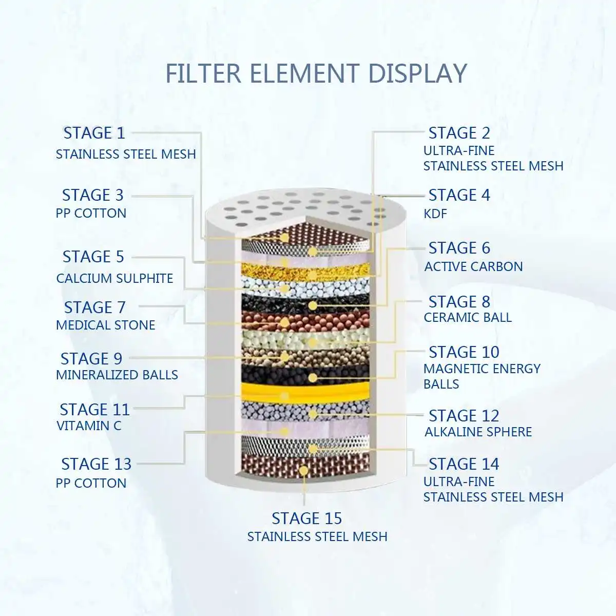 .Gallery of 15 Stage Bath Water Purifier Bathroom Shower Filter 1/2'' Universal Water Treatment Health Softener Chlorine Removal High Output