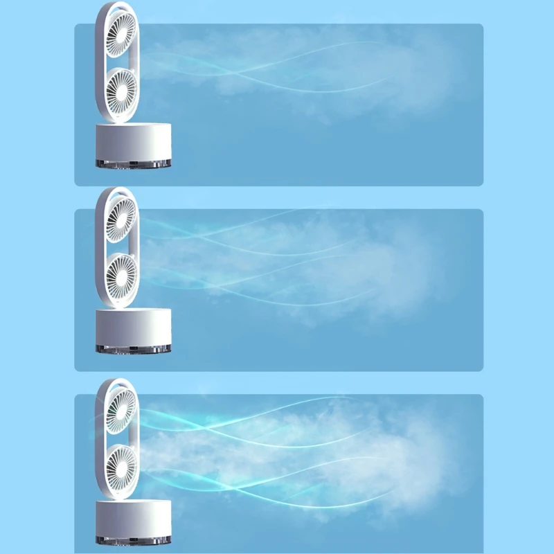 .Gallery of Double-Head Humidifying Spray Fan Adjustable Head 360° Rechargeable Rotatable Personal Desk Fan for Home Office