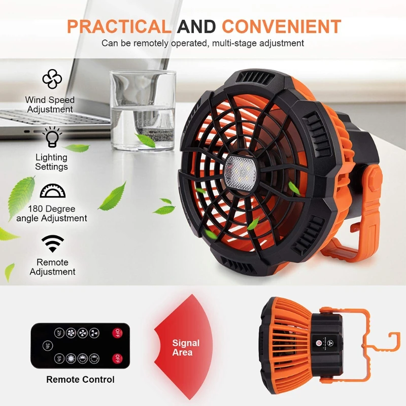 .Gallery of Portable Tent Fan Infrared Remote Control USB/Solar Charging Three Speed Powerful Machine for Home Office Outside Instrument