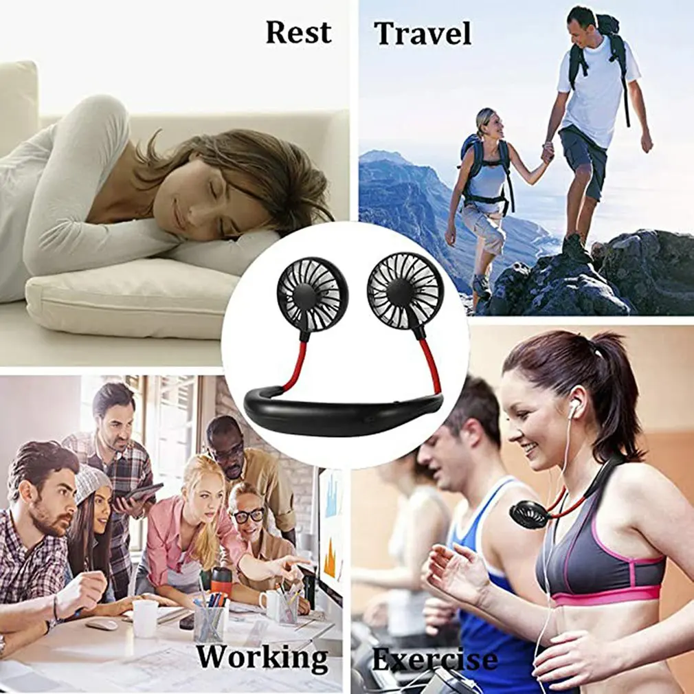 .Pictures of Wearable Lazy Sports Halter Fan Mini Hanging Neck Fan USB Rechargeable Cover Halter Sports Fan Air Cooler Outdoor