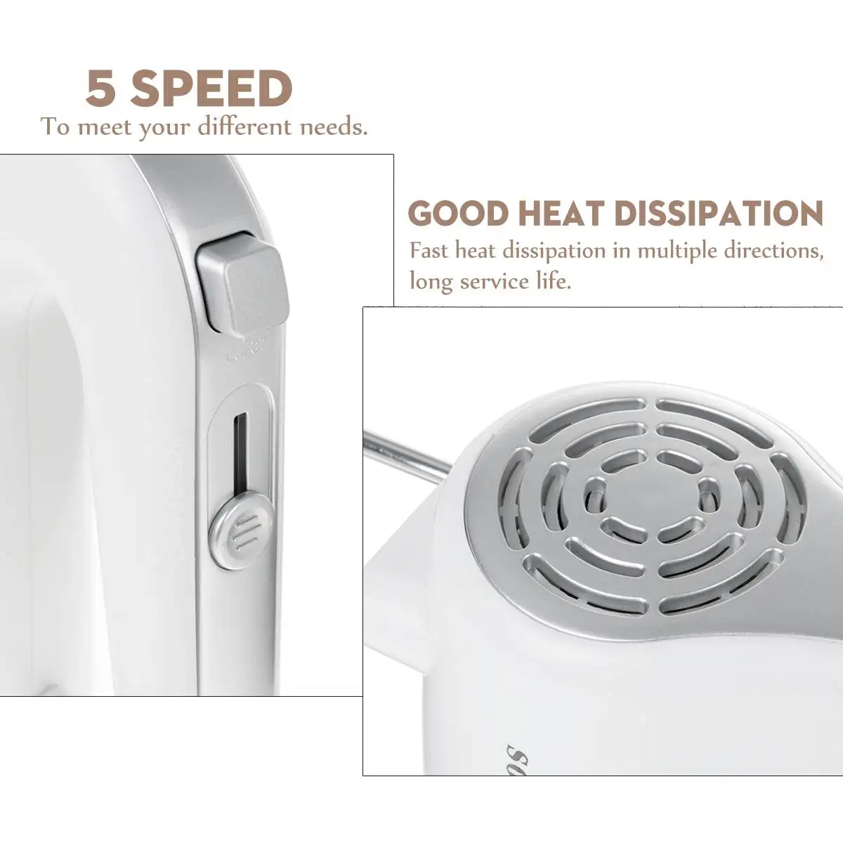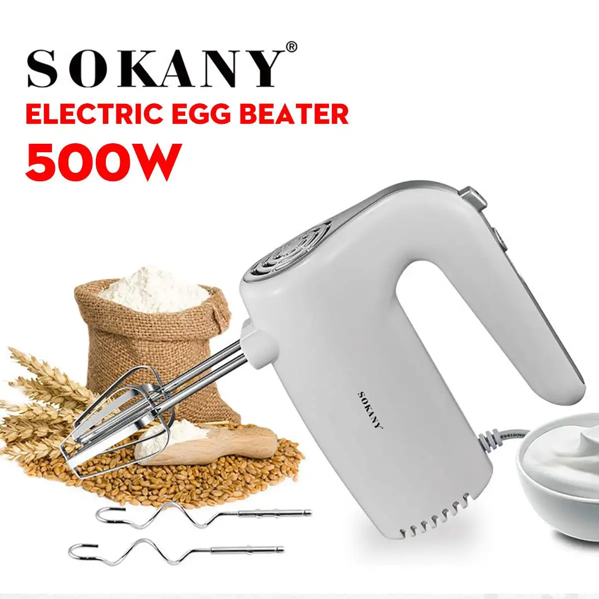 .Pictures for 5 Speeds Electric Food Mixer Hand Blender 500W Power Dough Blender Egg Beater Food Processor Kitchen Manual Cooking Tools