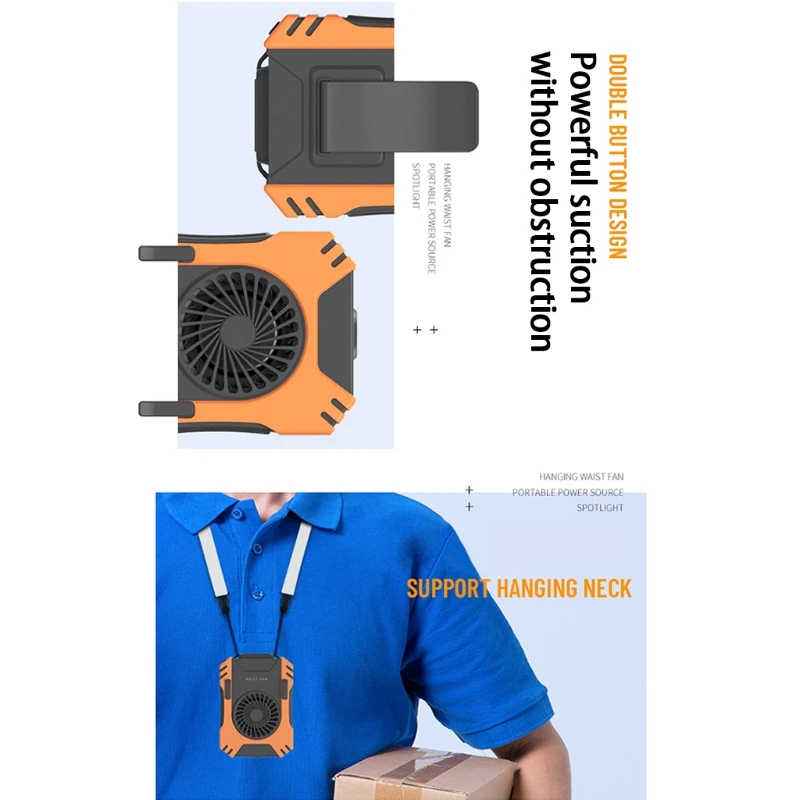 .Gallery of Multifunction Waist Fan 3 in 1 Spotlight Hanging Neck Cooling Fan 3 Gears USB Wearable Fan for Working Camping