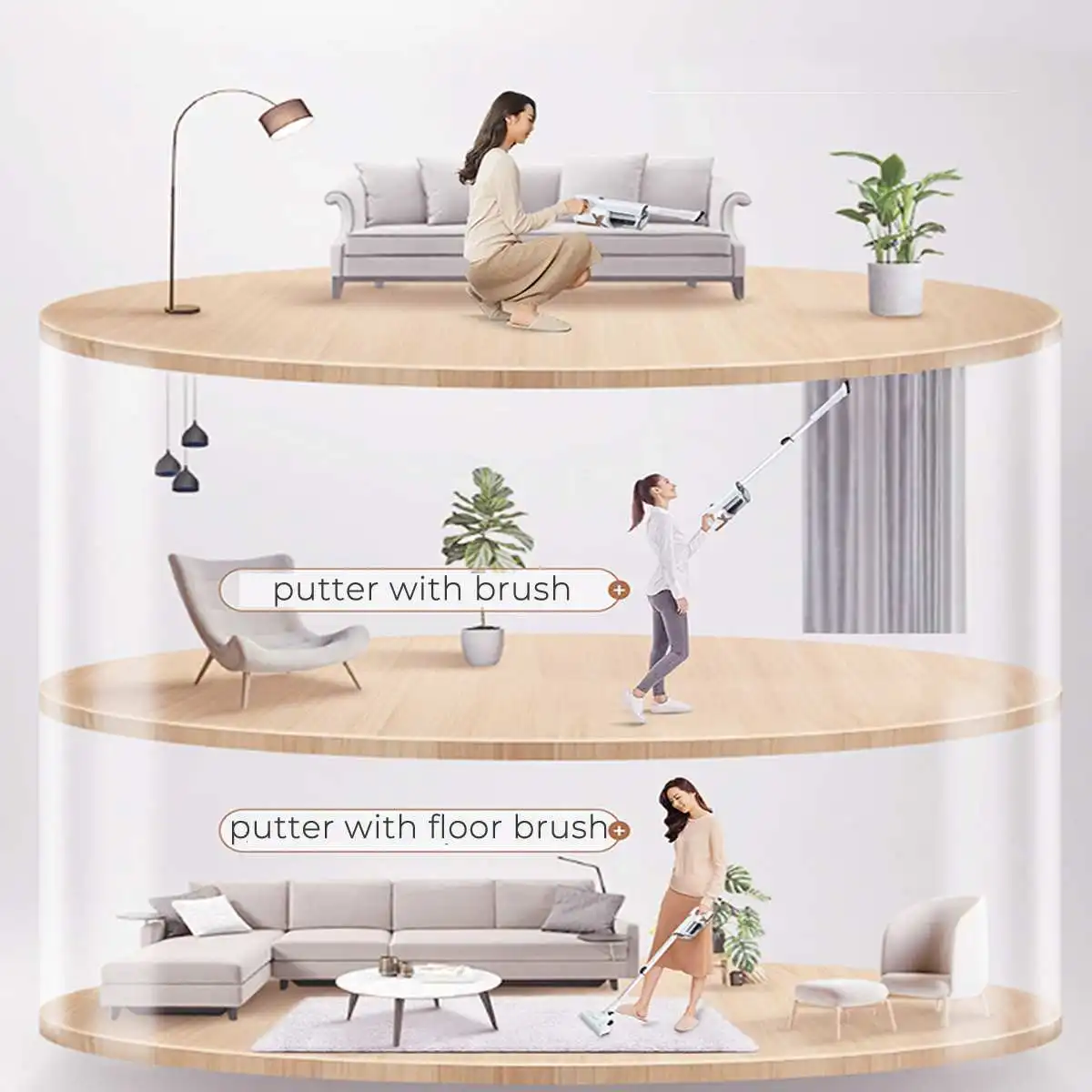 .Images of NEW 12000PA Strong Suction Vacuum Cleaner 150W Cordless Handhold Vacuum Cleaner Set Household Mite Remover with LED Lighting