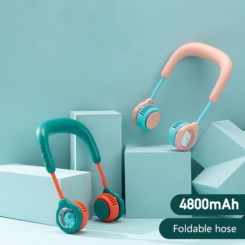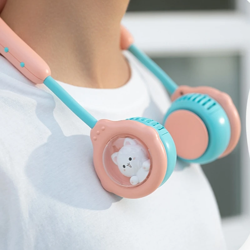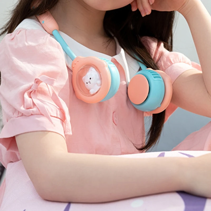 .Gallery for Cartoon Portable Hanging Neck Fan Mini Air Cooler USB Rechargeable Small Personal Cooling Tools for Home Outdoor Office